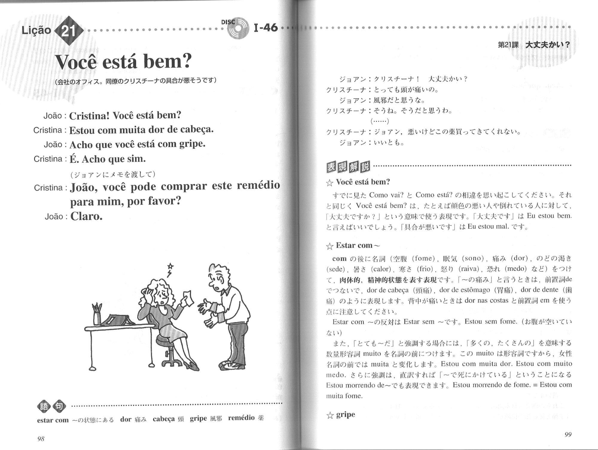 エストコムインと同時カベスト。すごい頭痛い状態にあるっていう意味。だから、頭痛いストコムイと同時カベサっていうのね。で、ジョアンが、 あしょけ、ボスエスタコンブリッピって言うんですよ。言うんですよ。だって、なんかいきなり標準語になっちゃうね。うん、あしょけは この間やった、あの、思うね、アイシングね。アイセンキュー、アイテンキューね。