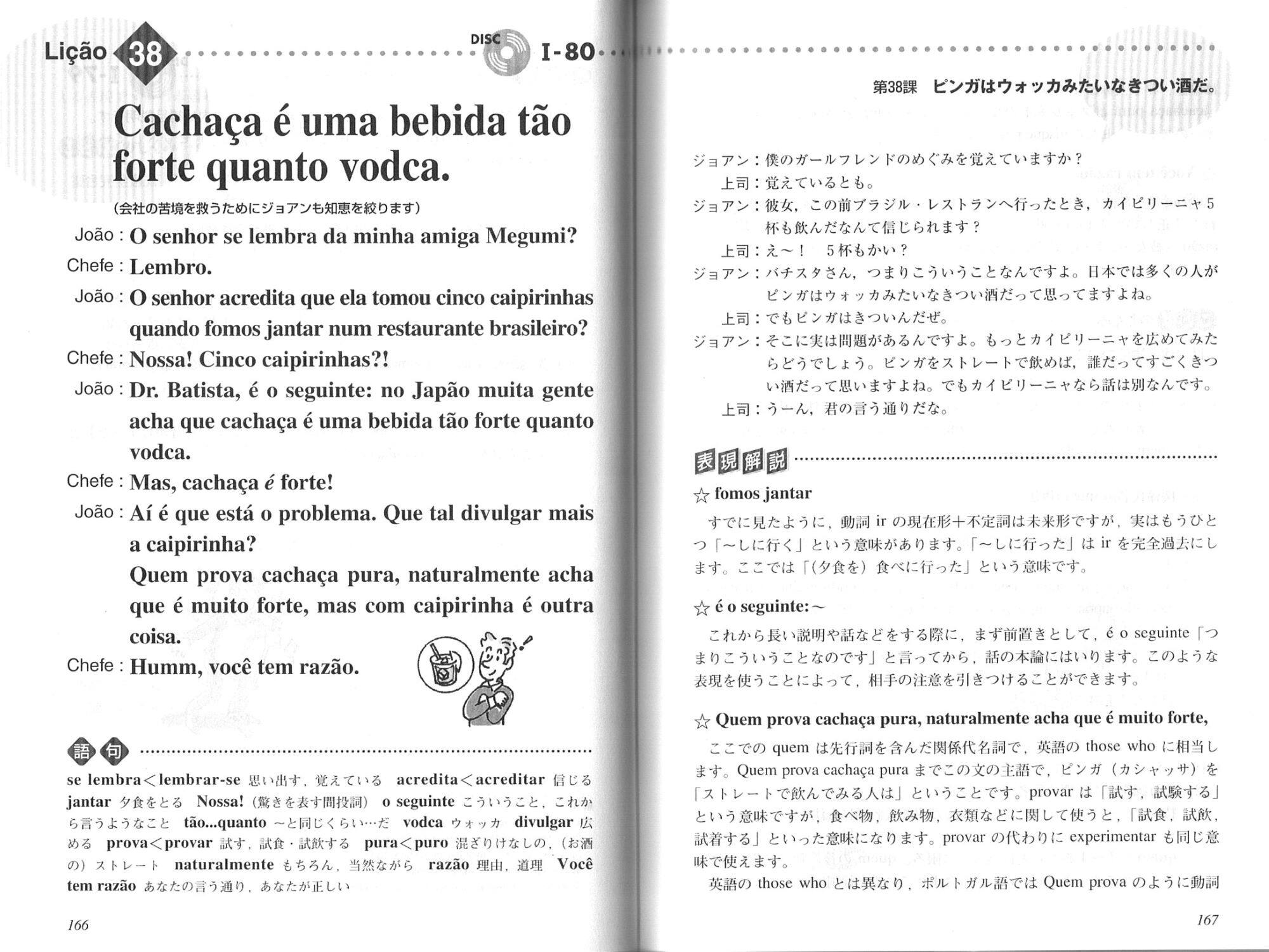 信じられますか。彼女がご飯かピリーにゃん 飲んだこと。うんていうのを日本語に今私は訳して、訳さざるを得ないから話してるけど、 あのポルトガル語の単語として頭に入れるわけよ。けえらとスコかピリーネス、順番にね。