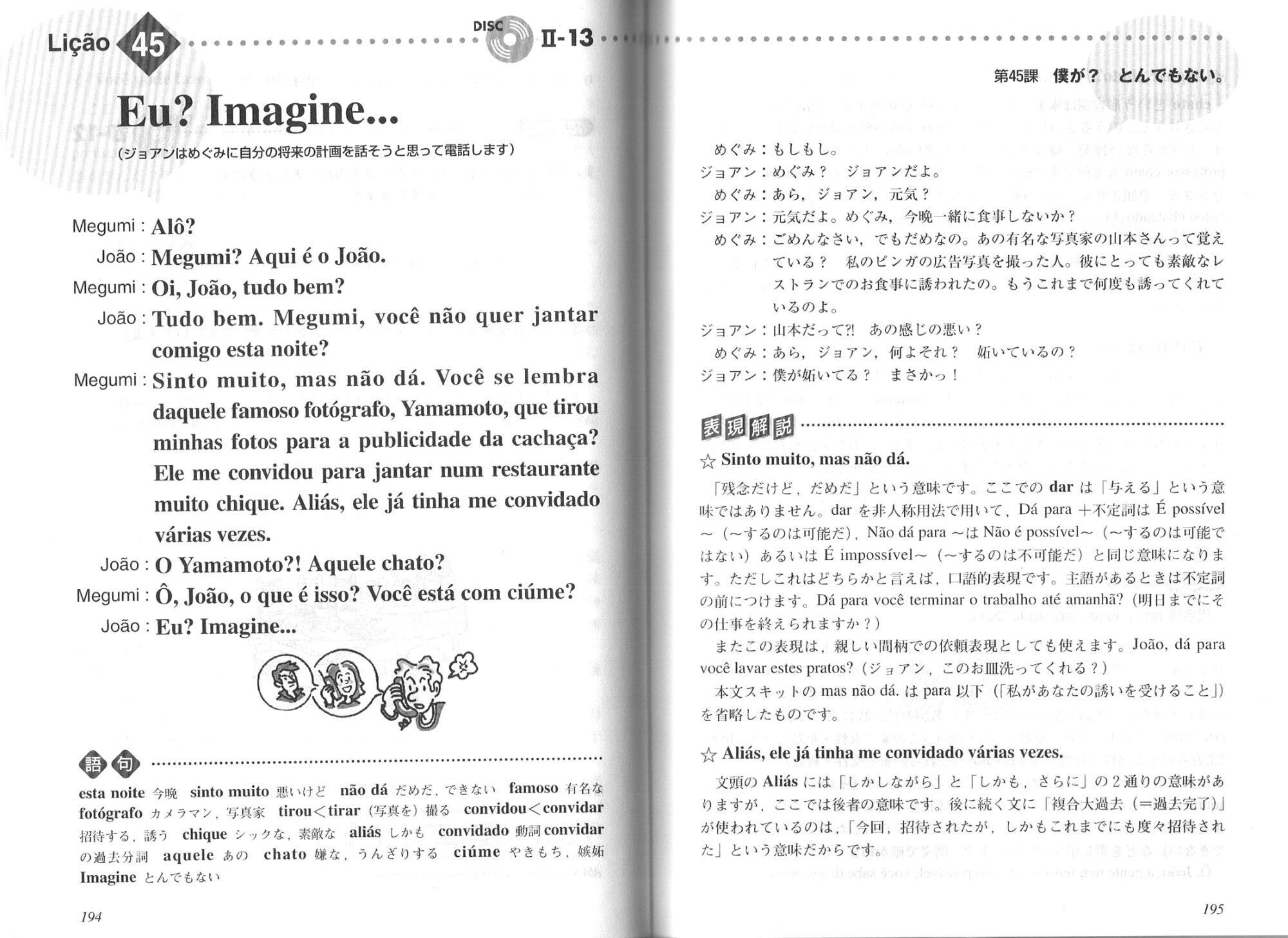 ポルトガル語ではね、ちーにゃんハブの過去形にみ。コンビタードコンピュータード の過去分子ね。うん、私をずっと誘ってくれてたのよ。ってことね。で、ファリアス。フェイゼス。ファリアスはファリアス。フェイゼスは、 あの、事あるごとにってかな。ん。何度もってことね。うんね、もとさんにいつも誘われてたって